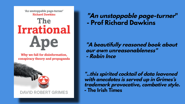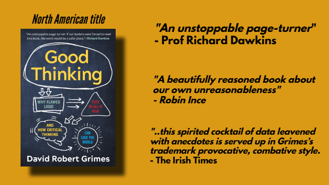David Robert Grimes (PhD, CStat) is a scientist, broadcaster, speaker, and author. His expertise includes public understanding of science, critical thinking, medical disinformation, mathematical modelling, and research integrity. He has contributed to outlets including the Guardian, Scientific American, The New York Times, BBC, the Financial times, the Irish Times, and many more.